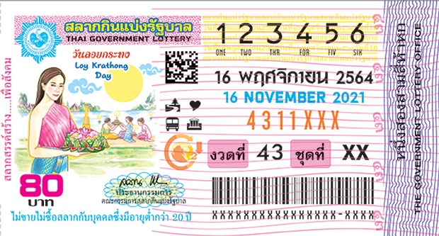 ตัวอย่างสลากกินแบ่งรัฐบาลงวดประจำวันที่ 16 พฤศจิกายน 2564